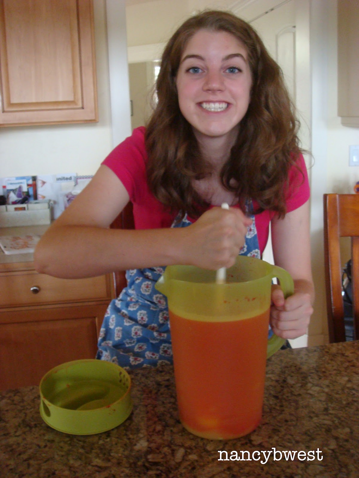 Mix until the Koolaid, orange juice and sugar are dissolved.